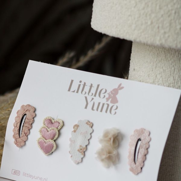Dit setje past prachtig bij lichte outfits, zachte tinten en alles wat een romantische uitstraling heeft. Of je mini nu lekker thuis speelt, meegaat op bezoek of er extra feestelijk uit mag zien: Juliette maakt elk moment net een beetje mooier 🌷
