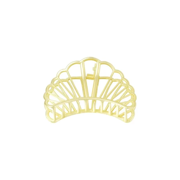 Deze goudkleurige croissantklem is zo’n item dat meteen opvalt.