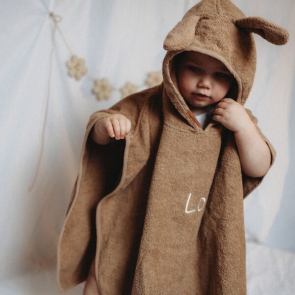 Na het badderen, douchen of een plons in het zwembad sla ik ‘m zo om mijn mini heen. De zachte badstof neemt vocht goed op en houdt lekker warm, terwijl de capuchon met oortjes zorgt voor een extra hoog knuffelgehalte. En eerlijk? Met deze poncho wil je eigenlijk helemaal niet meer uit bad.