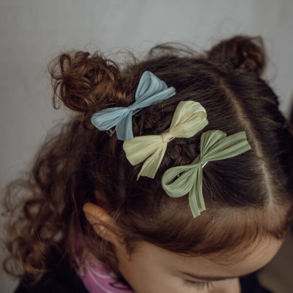 De 4 cm alligatorspeldjes blijven stevig zitten in fijn babyhaar en peuterhaartjes, zonder te trekken of te schuiven. Draag één strikje subtiel aan de zijkant of combineer meerdere voor een speelse look.